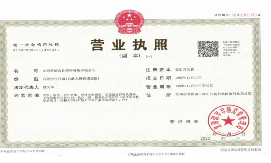 江西景德会计师事务所主要从事会计报表审计;注册资本验证;办理企业合并、分立清算事宜中的审计业务;担任会计顾问,企业破产管理。提供财务、会计、税务和其他经济管理咨询;有关培训及其他法定业务。