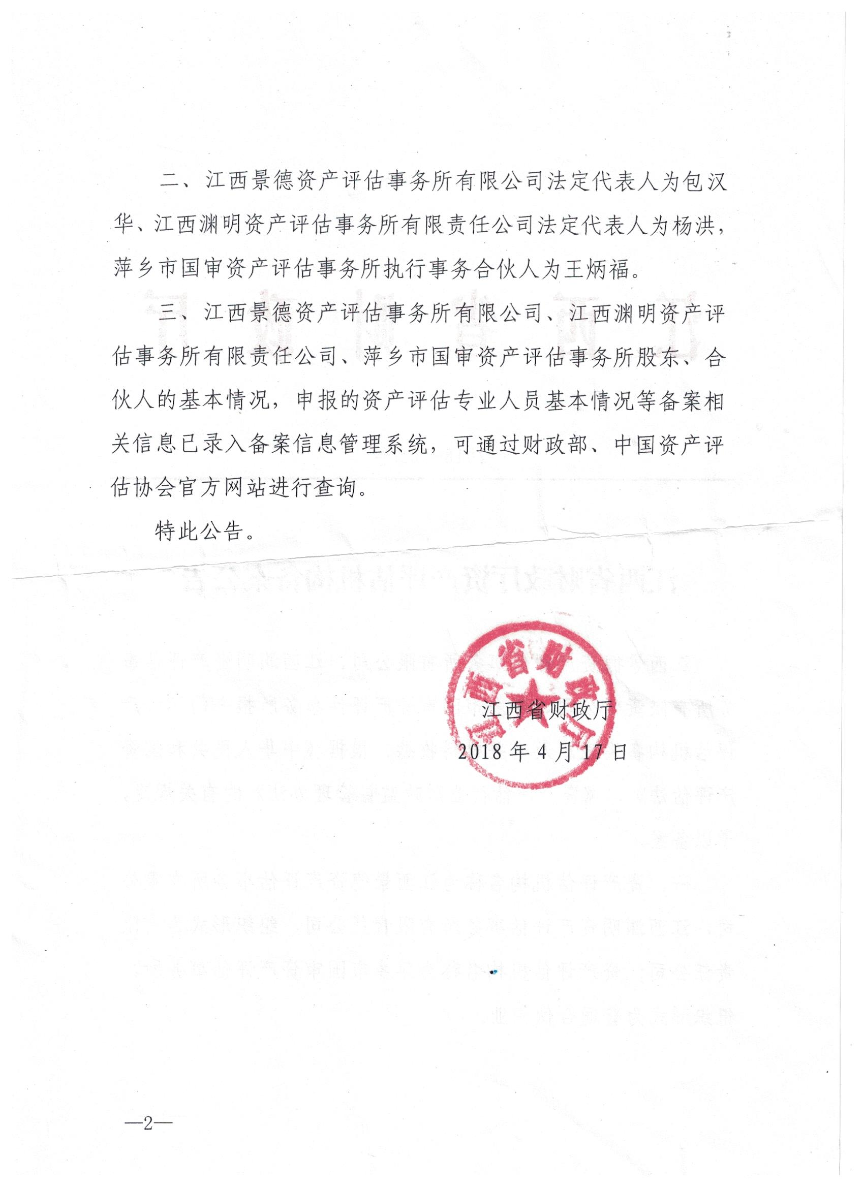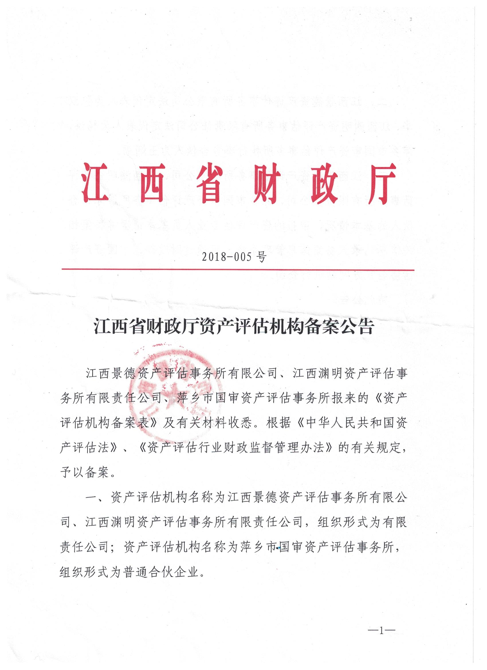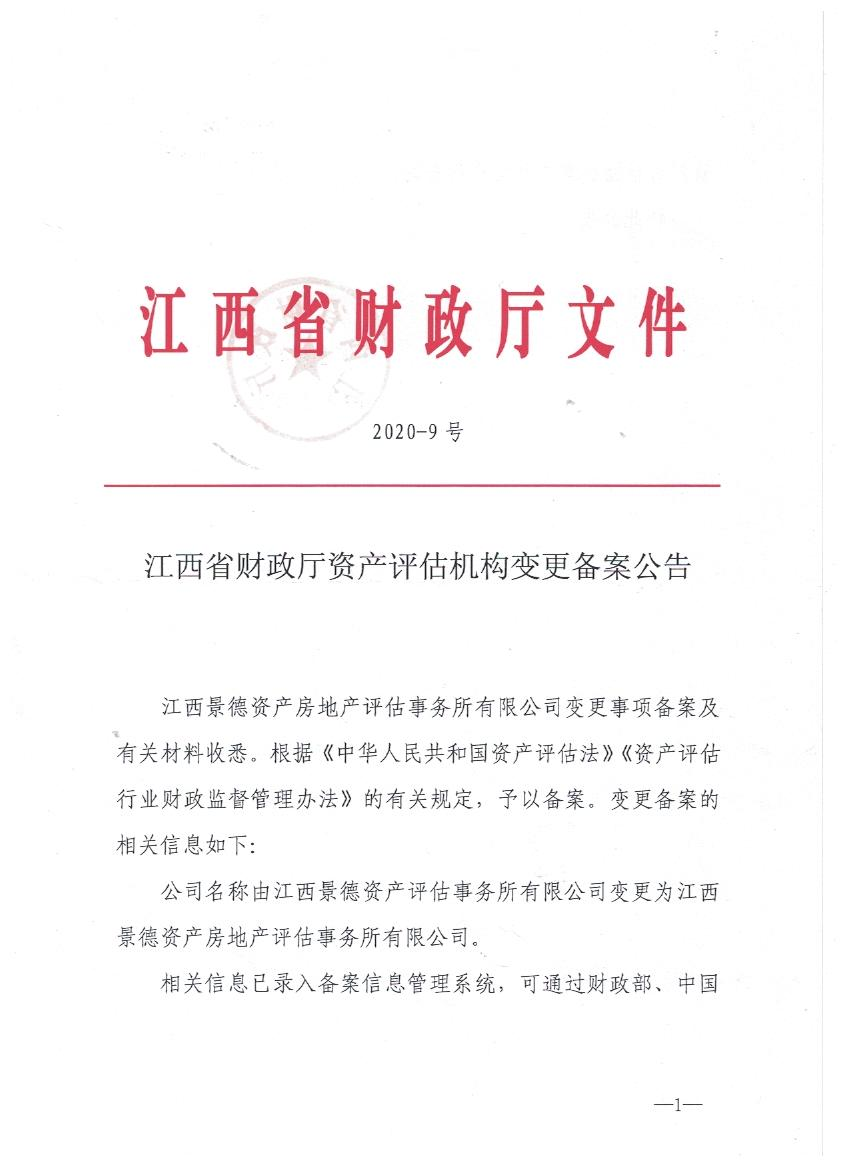 江西景德资产房地产评估事务所有限公司是一家经江西省财政厅赣财企【2008】122号批准,江西省工商行政管理局登记注册的具有法人资格的社会中介机构。江西景德资产房地产评估事务所有限公司前身是景德镇会计师事务所, 景德镇会计师事务所成立于1988年,是景德镇市财政局下属单位,1999年12月,景德镇会计师事务所改制为江西景德会计师事务所有限公司,2008江西景德会计师事务所有限公司分设江西景德资产房地产评估事务所有限公司,2018年与具有证券资质北方亚事资产评估事务所合作,成为北京北方亚事资产评估事务所景德镇分所,2020年4月更名为江西景德资产房地产评估事务所有限公司。