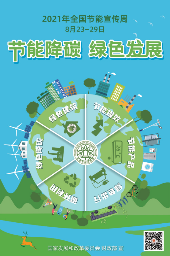 2021年8月23日至29日是第31个全国节能宣传周,活动主题为“节能降碳,绿色发展”。8月25日定为全国低碳日,活动主题“低碳生活,绿建未来”。