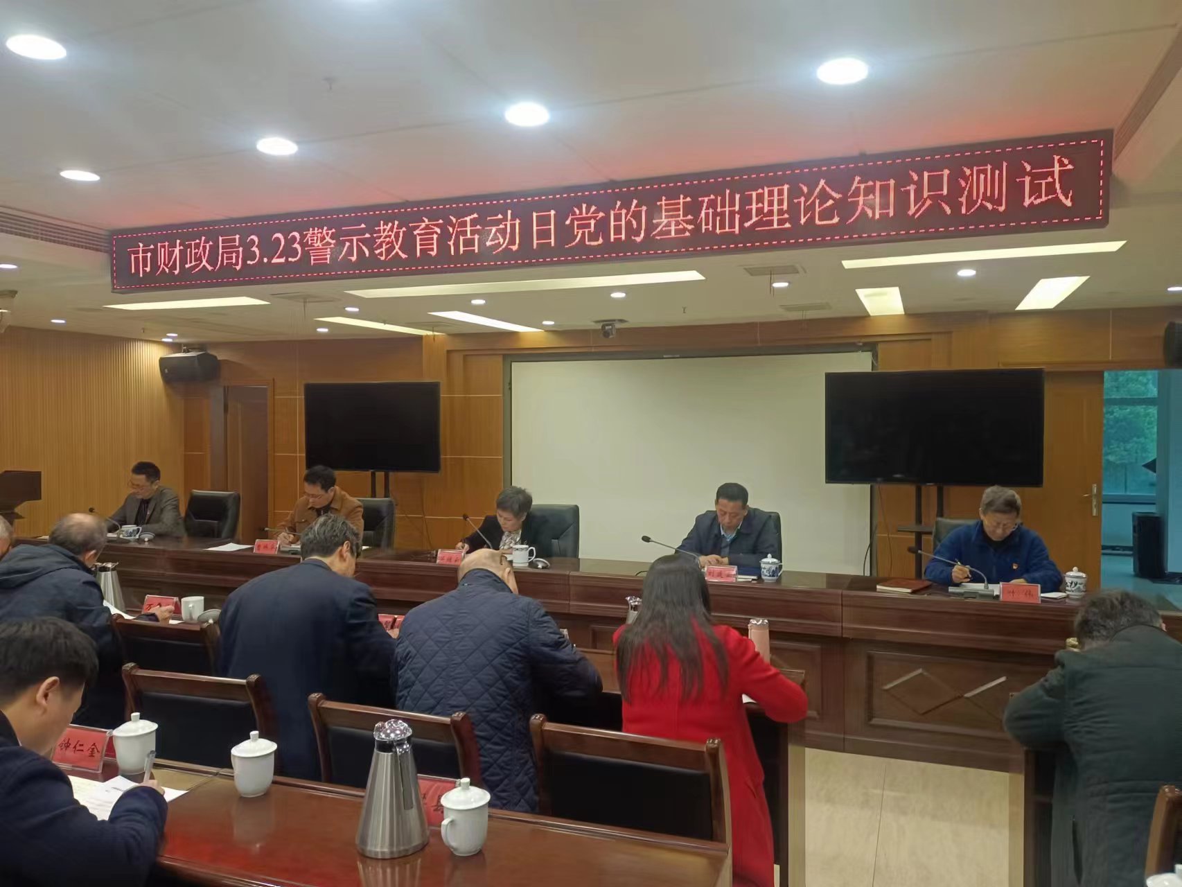 市财政局县级领导干部,驻局纪检监察组全体同志,机关科室(单位)负责人和县(市、区)财政局分管党建、财政监督的同志参加了会议。会后,开展了3.23警示教育日活动,全体参会人员参加了党的基础理论知识测试。