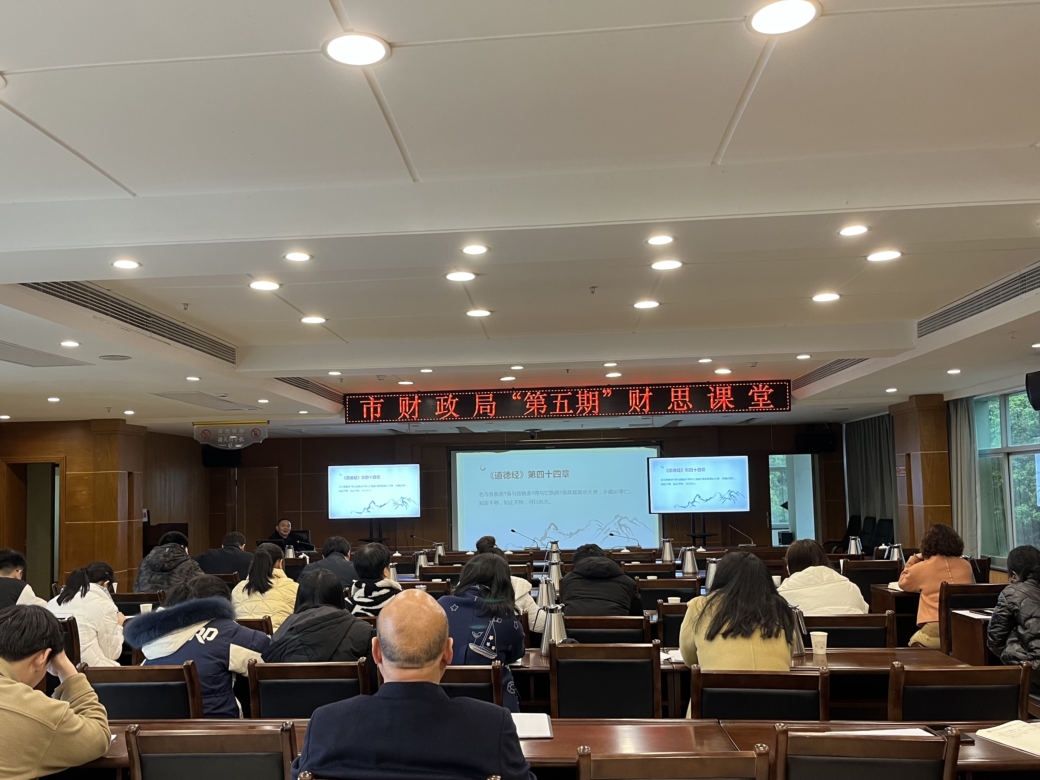 提升政治素养、坚定理想信念是财政干部首要政治任务,《传承红色基因 增强文化自信》《奋力谱写新时代新征程的崭新篇章——学习贯彻党的二十大精神》让全局干部职工对党的光辉历程和创新理论有了更深层次的理解感悟;打破科室壁垒、促进业务融合是增强财政凝聚力的重要途径,《政府预算和部门预算概述》《厉行节约反对浪费制度综述》和《解读政府购买服务政策要点及工作要点》的精彩讲述有助于消除“本位意识”、增强协调配合意识;学无止境,必备的办公常识和扎实的业务能力是财政干部稳步提升的基础,《机关公文写作基础知识》《新时代如何做好政法财政财务工作》的开讲进一步强化了全局干部职工的行政素养和工作水平;只有不断打开思维、格局与视野,才能看到更加广阔的天地,《汇泉润物——闲读《道德经》心得》《政府投资基金发展新形势》的授课让财政干部“跳出财政看财政”……