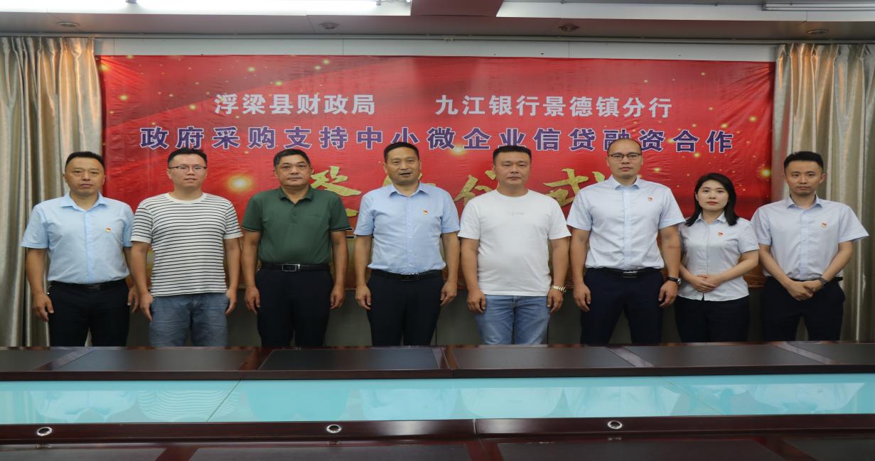 为充分发挥政府采购政策功能,破解融资难瓶颈,支持中小微企业和民营经济健康发展,促进全县经济高质量跨越式发展,浮梁县财政局积极落实和推进政府采购合同融资服务平台建设工作。8月26日,浮梁县财政局与九江银行景德镇浮梁行签订了政府采购支持中小微企业信贷融资合作协议,搭建了浮梁县第二个政府采购信用融资平台,这是浮梁县财政局和九江银行景德镇分行落实省委、省政府一号改革工程的又一项积极举措。