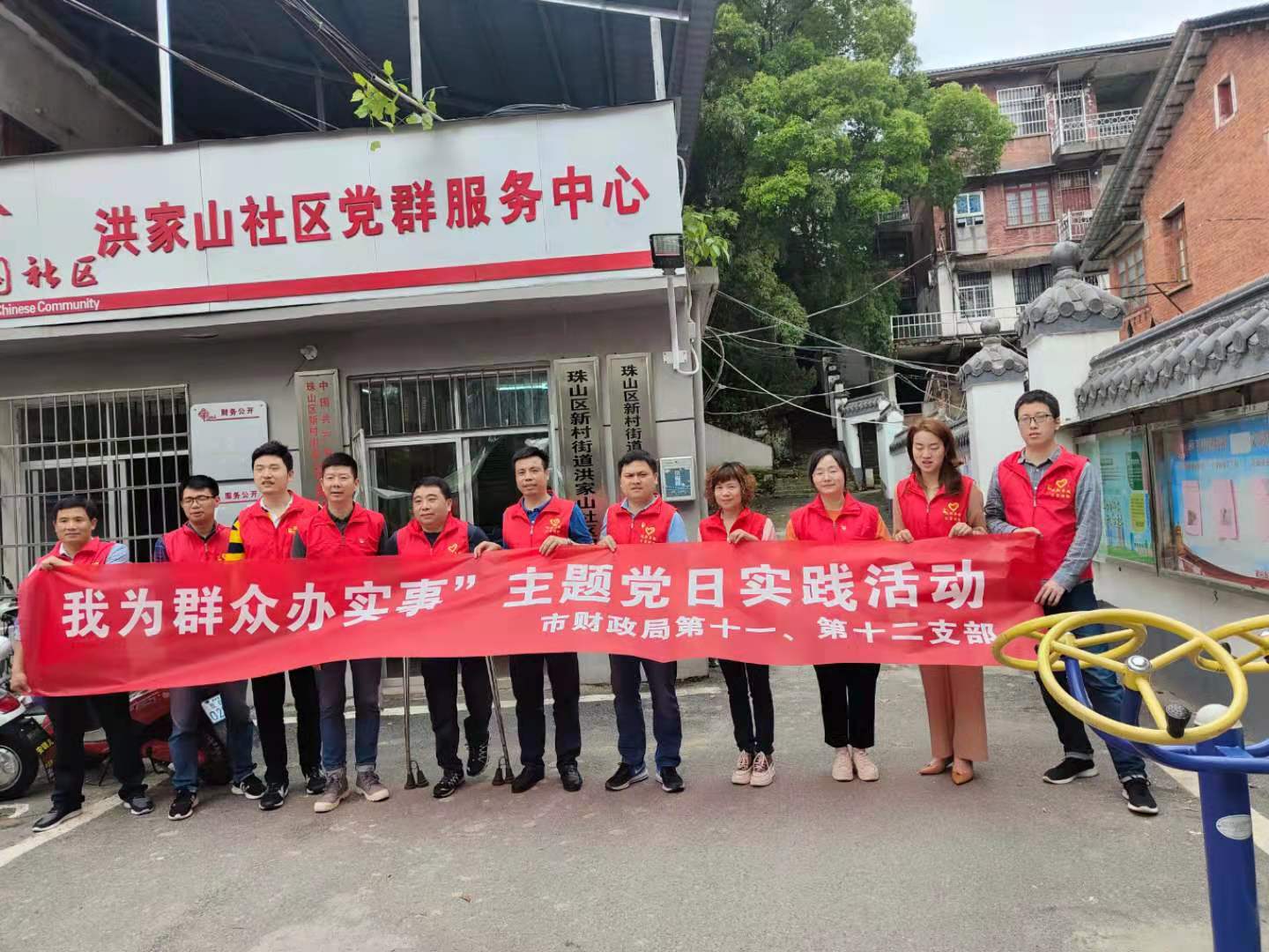 5月12日下午局十一、十二党支部开展“我为群众办实事”主题党日活动,到帮扶社区—洪家山社区,开展整治环境卫生、为老年人理发、书法音乐进社区等活动。