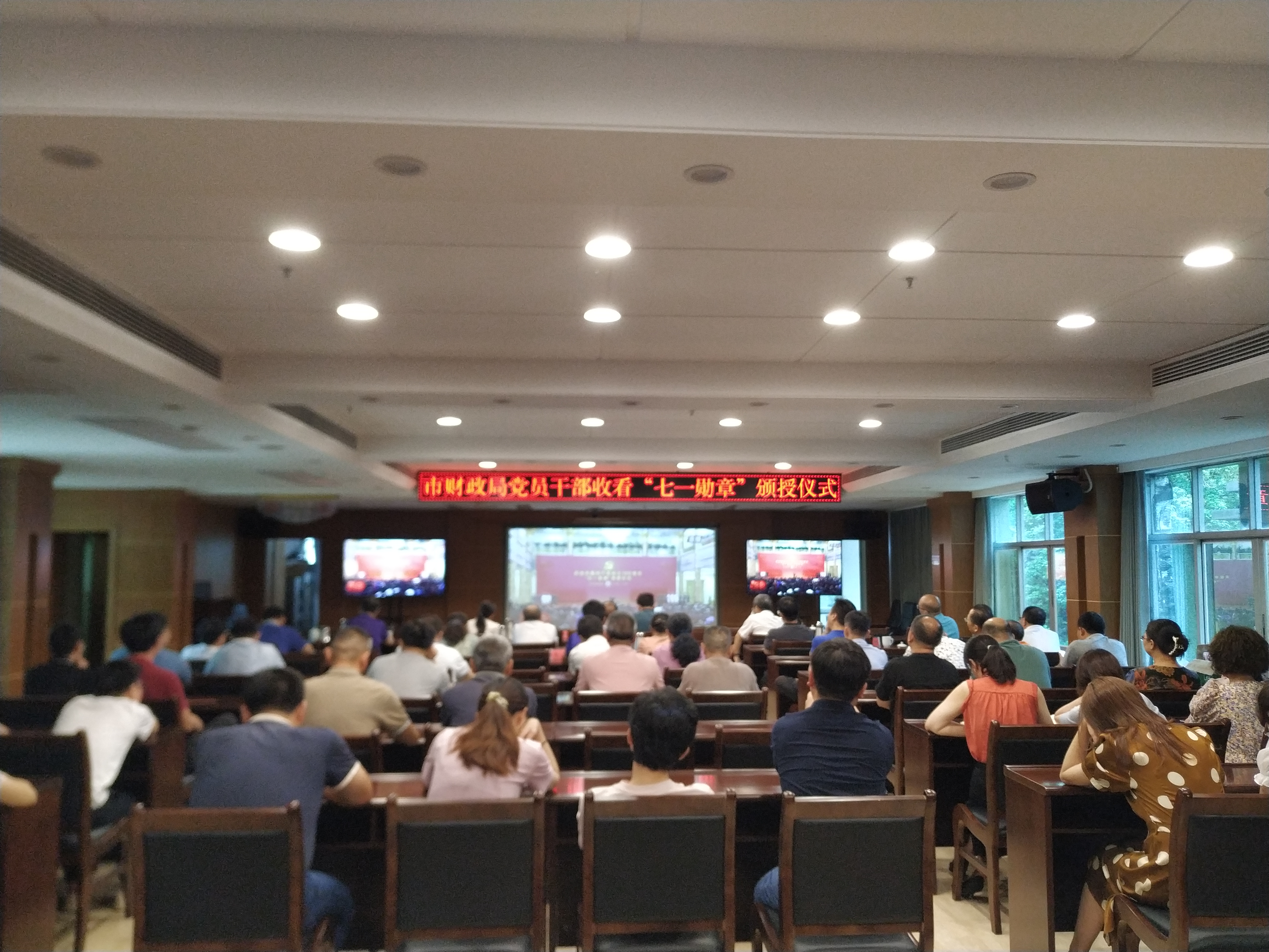 6月29日上午,市财政局80多名党员干部集中收看“七一勋章”颁授仪式,聆听了习近平总书记的重要讲话,学习了“七一勋章”获得者的光荣事迹,振奋精神,昂扬斗志,决心以习近平总书记重要讲话为指引、以“七一勋章”获得者爱党敬业精神为榜样,践行党的初心和使命,为实现中华民族伟大复兴做出更大贡献。
