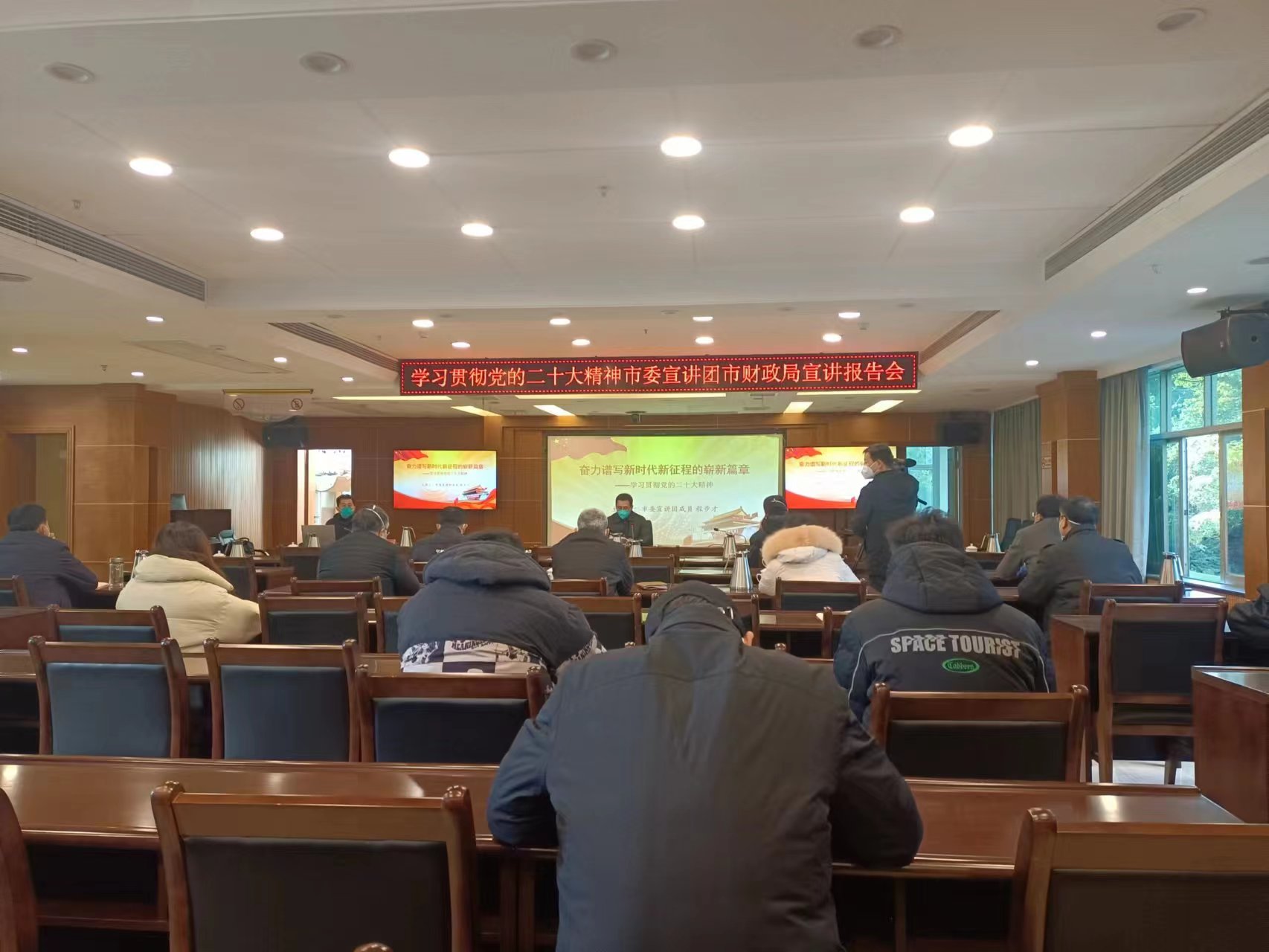 12月19日上午,市委宣讲团成员到我局作党的二十大精神宣讲报告。局班子成员、县级领导、其他在职党员干部和注册会计师行业党员、局退休党员70余人参加宣讲报告会。局党组成员、副局长曹炜华同志主持报告会。