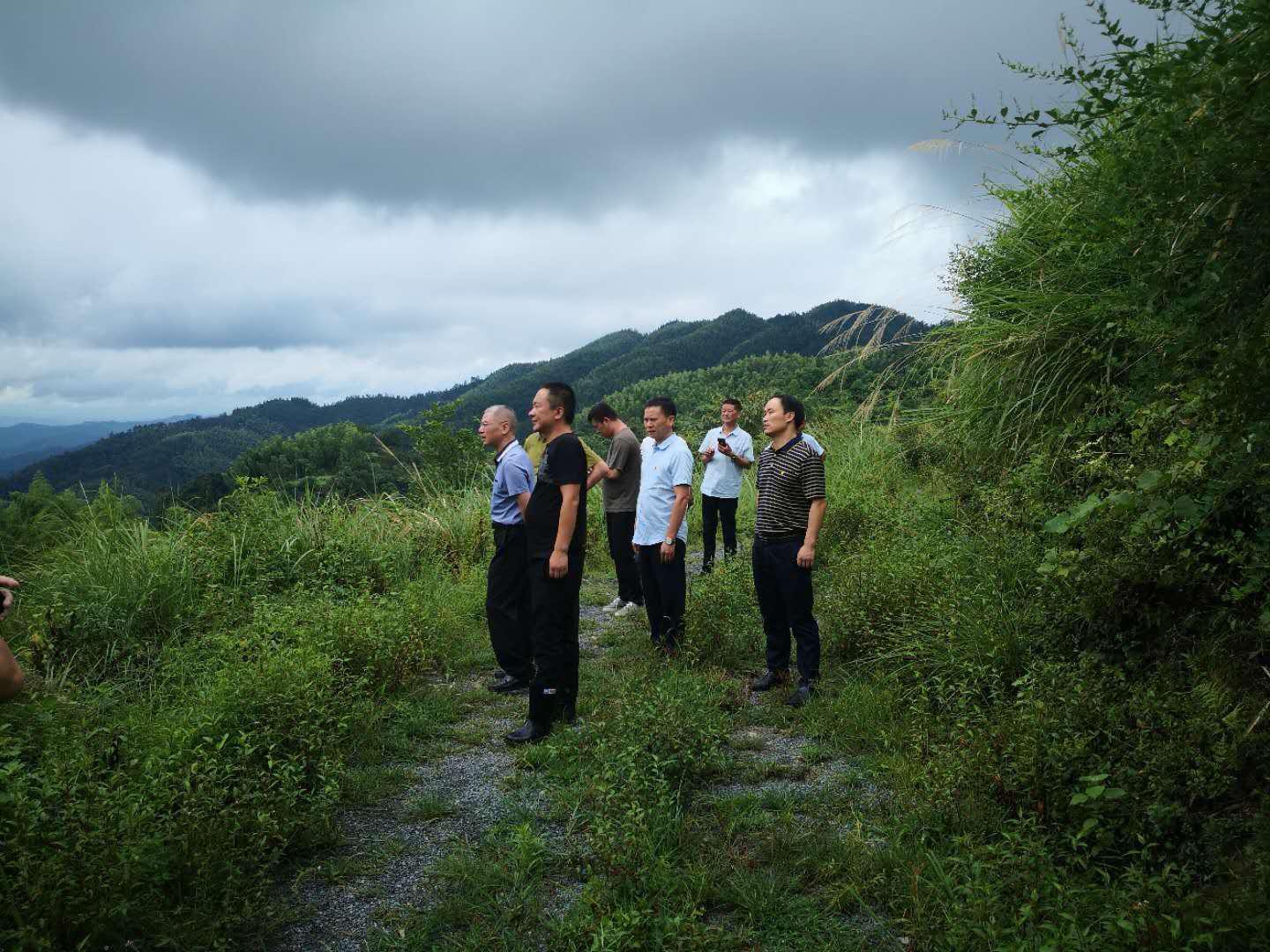 图2:现场察看金竹山进村道路维修工程